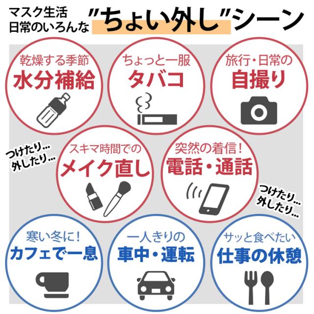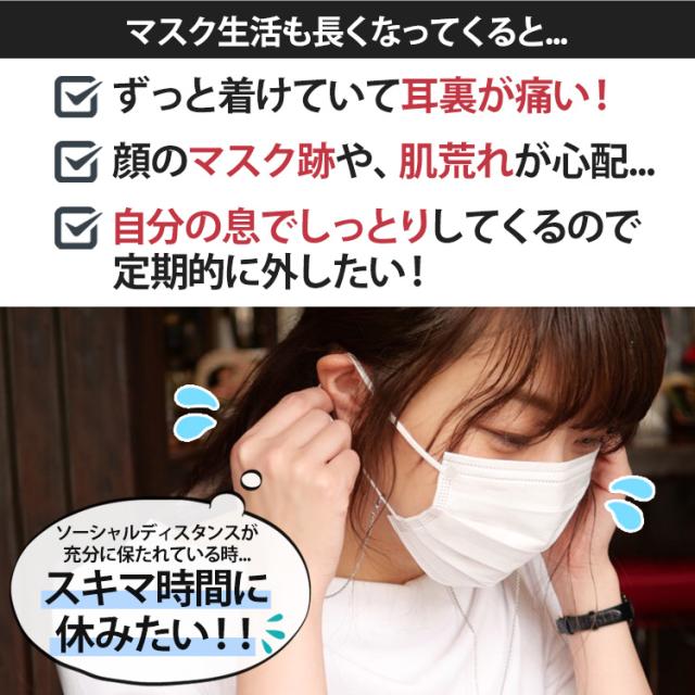 - 今までは喉が乾いて飲み物を飲む時や飴等の小さいお菓子を口に入れる時はマスクを外してマスクケースに毎回いれていましたが、マスクストラップを購入してからは外食の時だけマスクケースにいれています。サージカル...
