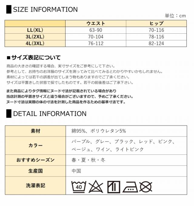 3L(2XL):ウエスト70-104 ヒップ78-116