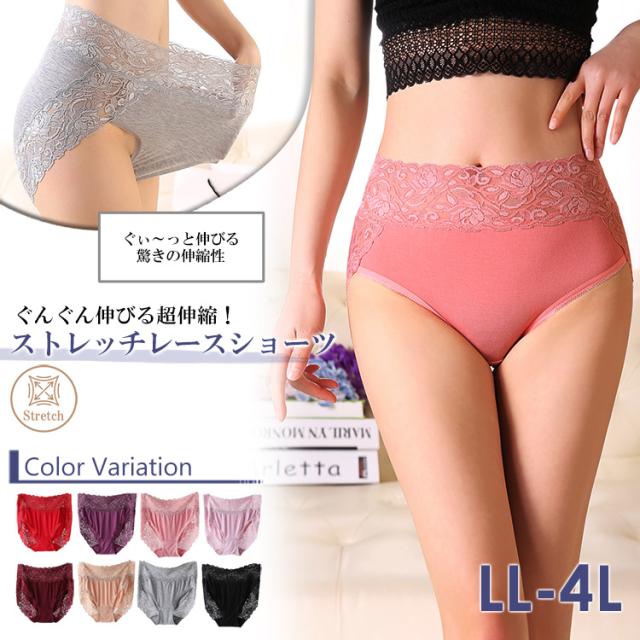 大きいサイズ レディース インナー メール便送料無料 ショーツ 花柄レース ストレッチ コットン レースショーツ ランジェリー