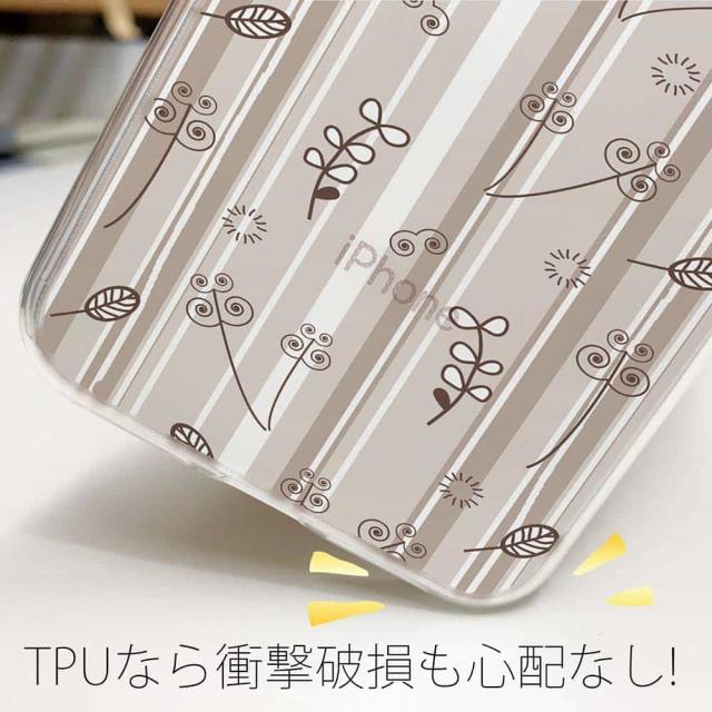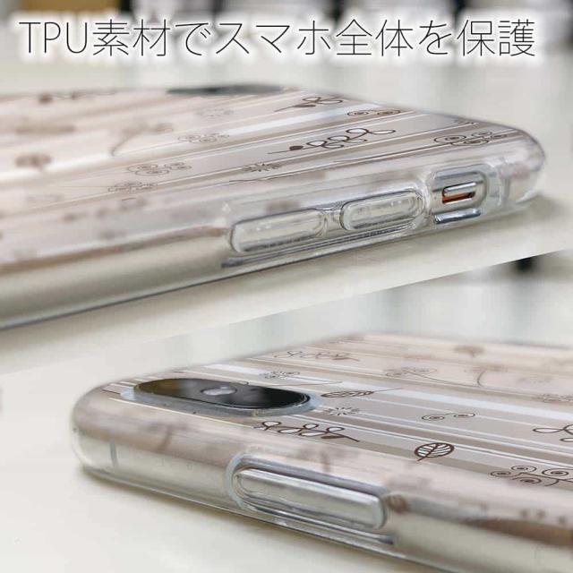 | 素 材 | 側面はゴムのように柔らかいTPU素材で、スマホ本体を守ります。万が一の落下でもケースが割れることがなく、耐久性の高いケースとなります。クリア(透明)のTPUケースにプリントしていますので、スマホ本体のカラーを活かしながらデザインケースが楽しめます。 |
