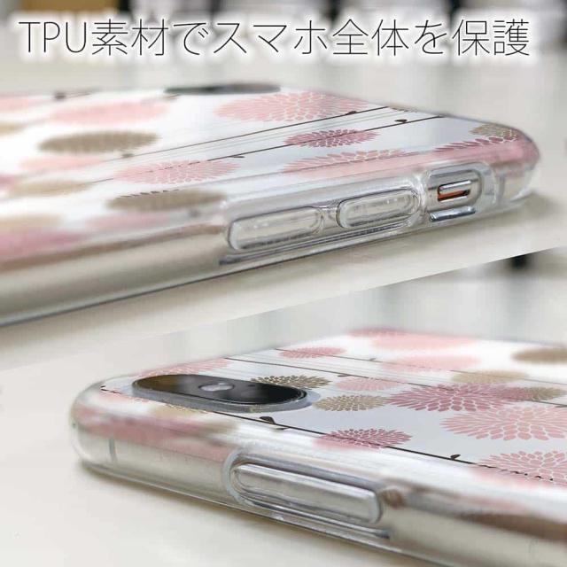 | 素 材 | 側面はゴムのように柔らかいTPU素材で、スマホ本体を守ります。万が一の落下でもケースが割れることがなく、耐久性の高いケースとなります。クリア(透明)のTPUケースにプリントしていますので、スマホ本体のカラーを活かしながらデザインケースが楽しめます。 |