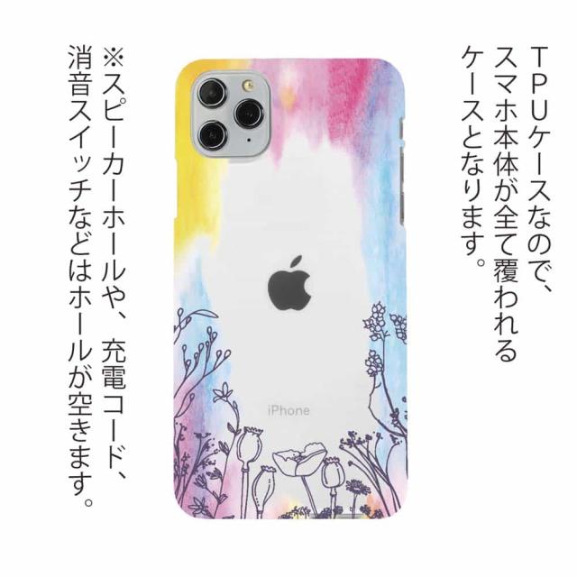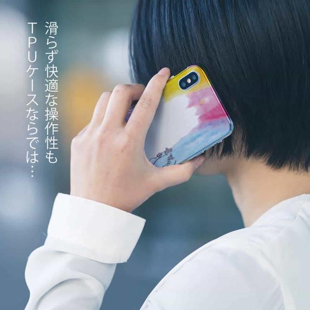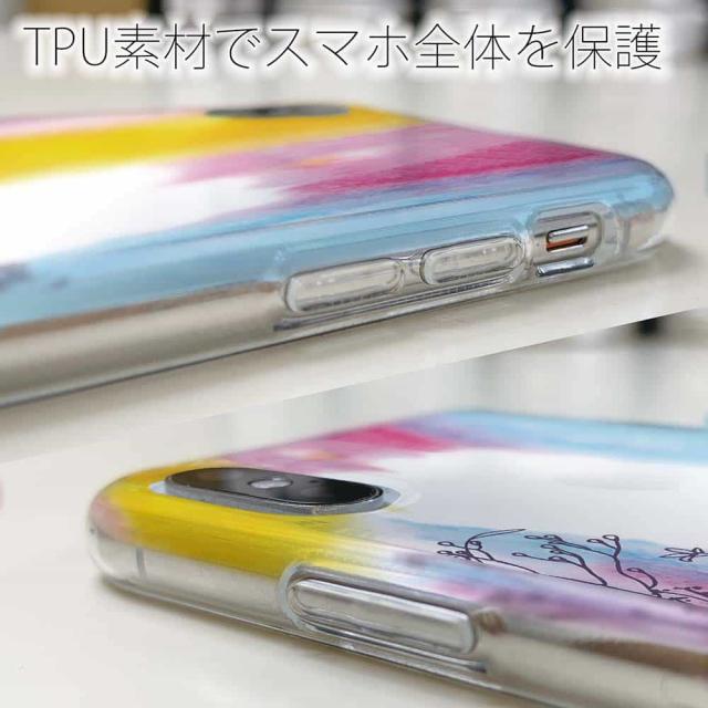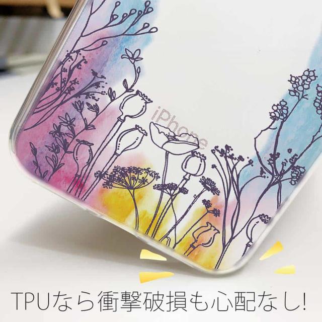 | 素 材 | 側面はゴムのように柔らかいTPU素材で、スマホ本体を守ります。万が一の落下でもケースが割れることがなく、耐久性の高いケースとなります。クリア(透明)のTPUケースにプリントしていますので、スマホ本体のカラーを活かしながらデザインケースが楽しめます。 |