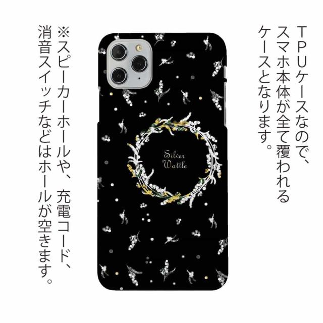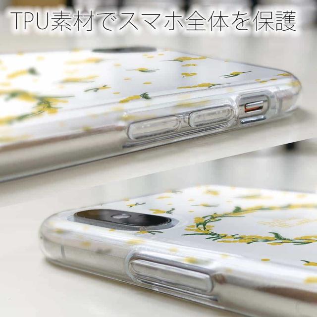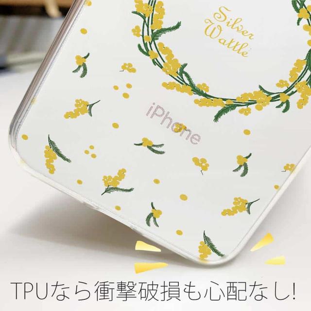 | 商品説明 | 落下や衝撃に強いTPUケース。ケースに直接プリントしてお届け。黄色のミモザ(アカシア)の花言葉は「秘密の恋」。そんなミモザのデザインをあしらったケース。スマホ本体のカラーを生かすように、イラストの間が透明(クリア)になっているデザインです。 |