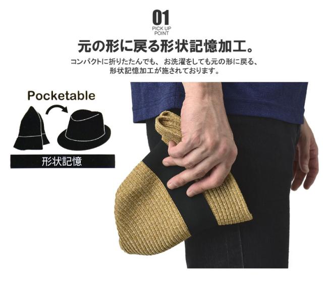 ハット メンズ 形状記憶 帽子 洗える ウォッシャブル ポケッタブル サイズアジャスター装備 フリーサイズ 大きいサイズ 61cmまで【Z2Q】