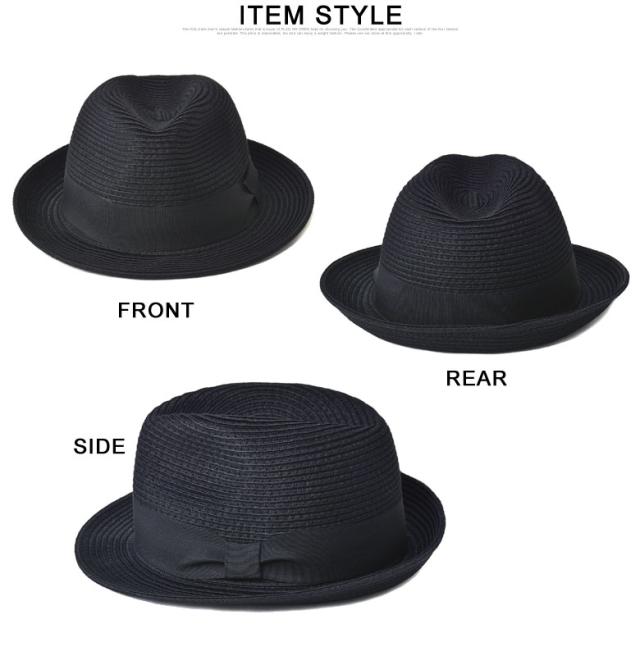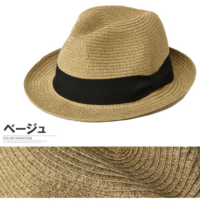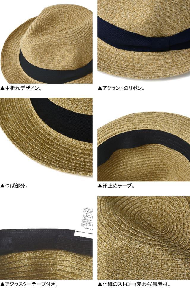 化繊のストロー(麦わら)風素材で作られた、中折れハットです。