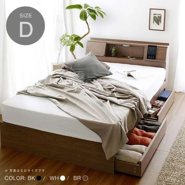 ベッド ベッドフレーム 収納ベッド ダブル 棚付き 棚 引出付 FLAP フラップ USB付き 多機能ベッドフレーム