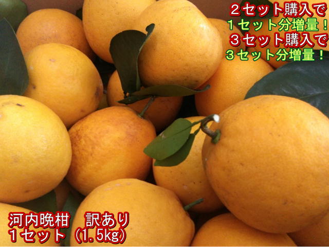 【セット】河内晩柑 訳あり 1セット1.5kg 熊本産 2セット購入で1セットおまけ!3セット購入で3セットおまけ!和製グレープフルーツ 60サイズ