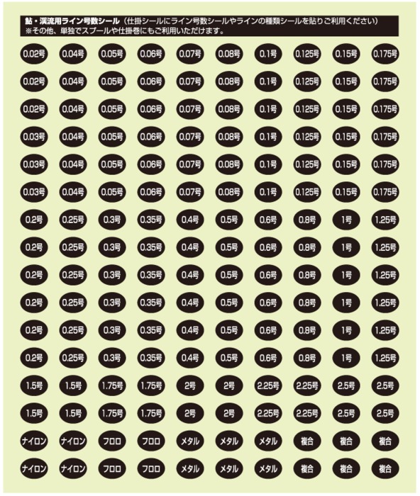 仕掛シールに号数シールを貼り使用したり、直接針ケース・オモリケース・スプールに貼って使用できます。
