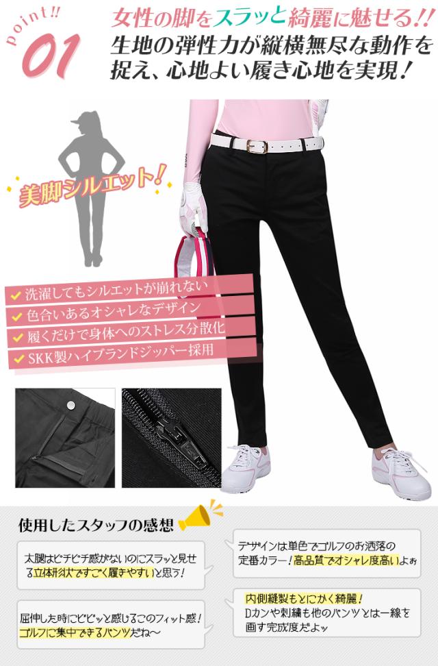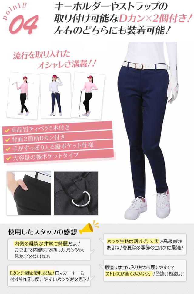 - 彼女にプレゼントで購入。すごく喜んで気に入ってくれました。レディースのゴルフウェアはスカートが多くてパンツは中々希望通りの物が見つからなかったみたいですがこちらの商品はコスパもよくて作りもしっかりして...
