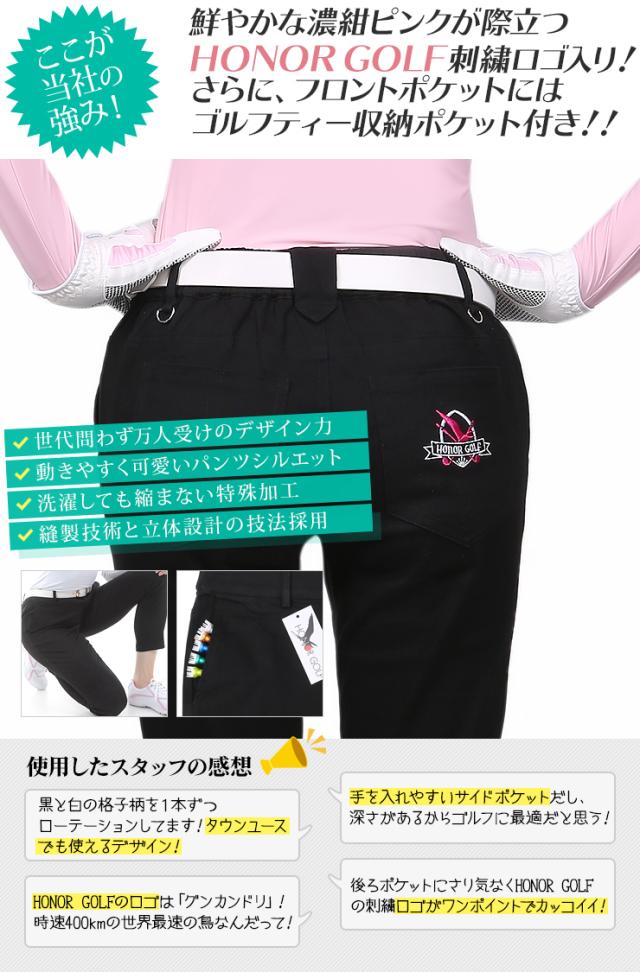 HONOR GOLF ゴルフパンツ レディース ブランド 秋 秋冬 ストレッチ ズボン 速乾 小さい 大きいサイズ ゴルフティ 5本付