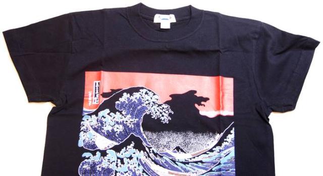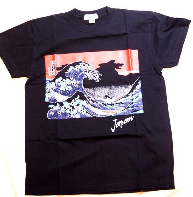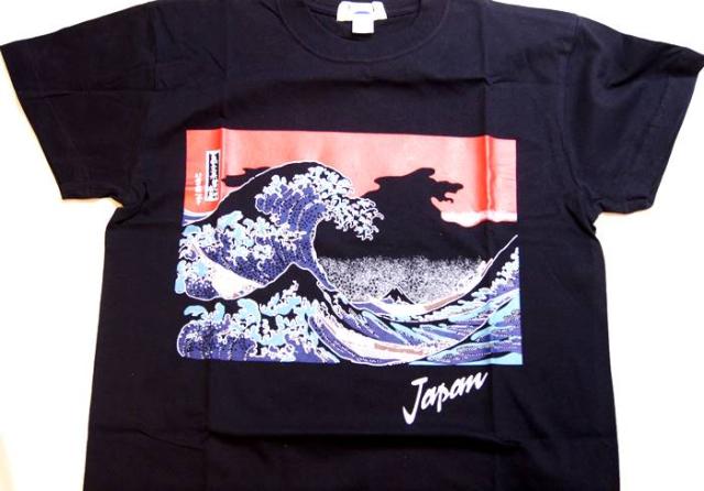 横濱 葛飾北斎 富嶽三十六景 神奈川沖浪裏 アレンジ Tシャツ 黒色