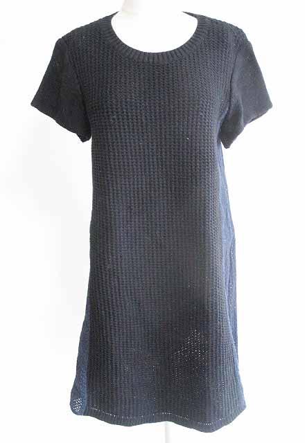 【中古】プリングル Pringle ワンピース チュニック 半袖 膝丈 コットン 100 黒 ネイビー 紺 UK10 レディース