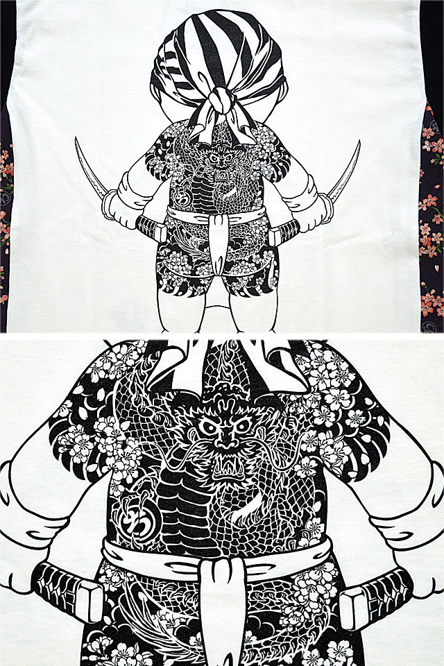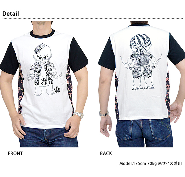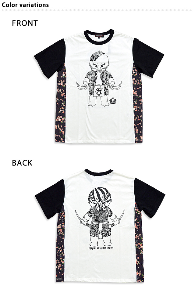CHIGIRIさんから、「前後ちぎり脇切替半袖Tシャツ(CHS41-681)」のご紹介です。 今回は、フロントに前から見たちぎり剣士、バックに後ろから見たちぎり剣士の姿を落とし込んだ、CHIGIRIらしい個性派デザインの半袖Tシャツです。 体中に刺青が彫り込まれた勇ましい佇まいで、ふんどしには「ちぎり」のロゴが。 ボディーには、綿100%のさらりとした肌触りの薄手なTシャツ生地を使用。 | |||||||||||||||||||||||||