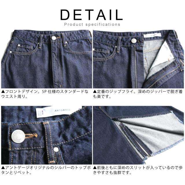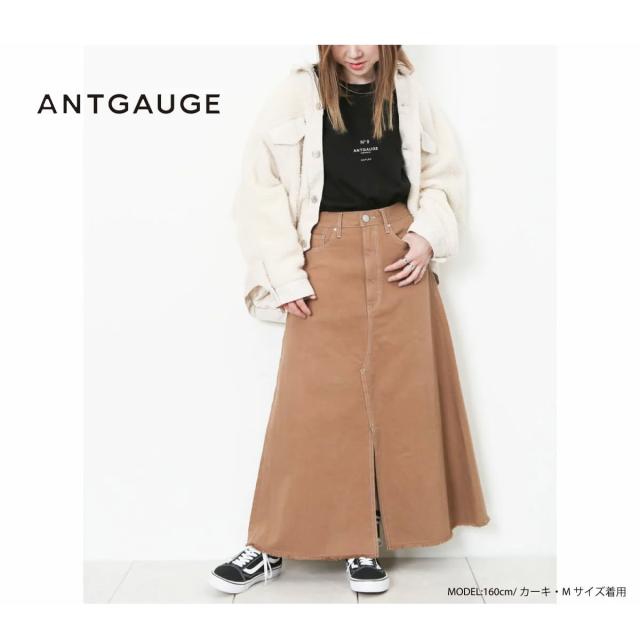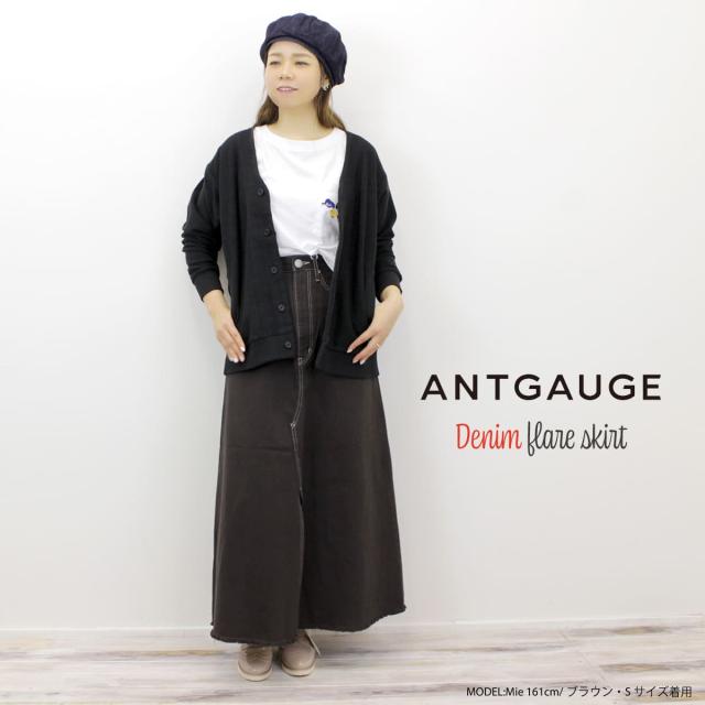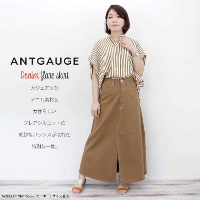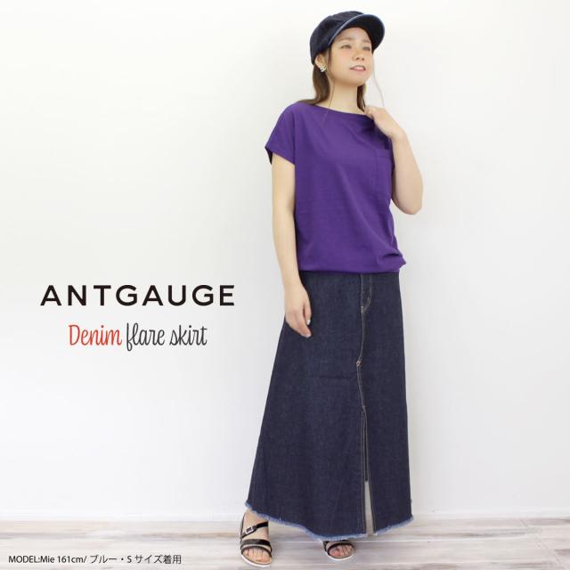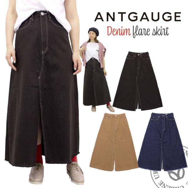 ANTGAUGE アントゲージ デニムフレアスカート スリット GE340 膝下丈 aライン ひざ下丈 レディース 春 ロングスカート 裾断ち切り仕様 日本製 大人 カジュアル おしゃれ 定番 送料無料 アーベン 普段使い 実用的 2025年