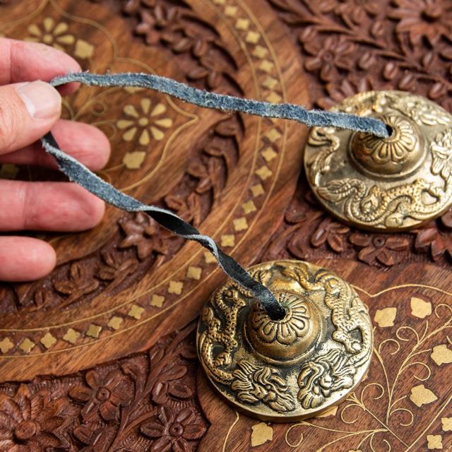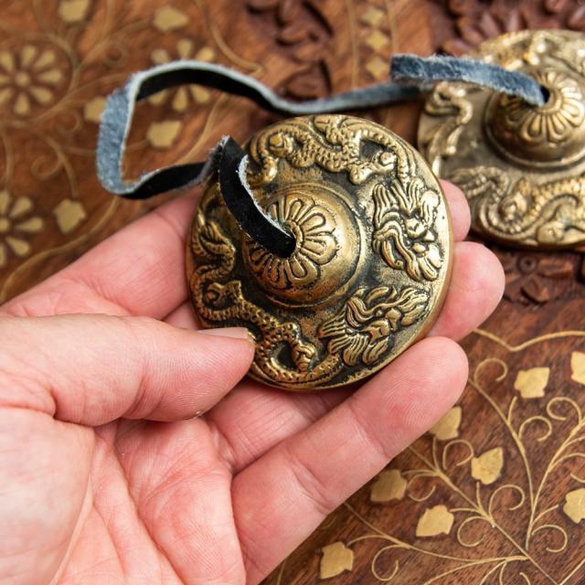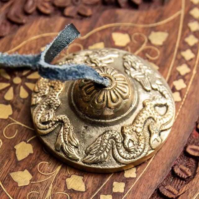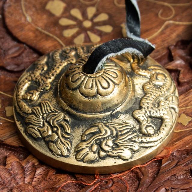 ドラゴン柄ディンシャ【約6.5cm】 / ディンシャ、チベタンベル、マンジーラ、ネパール 楽器、ネパール 打楽器、打楽器、民族楽器 民族楽器 【インドとアジアン民族楽器