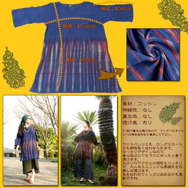 サラサラ素材のタイダイチュニック / 7分袖 TIRAKITA(ティラキタ) レディース エスニック アジアン 女性物 長袖 トップス エスニック衣料 アジアンファッション エスニックファッション