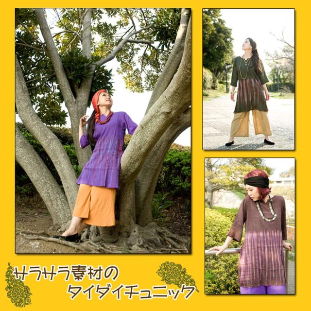 サラサラ素材のタイダイチュニック / チュニック、7分袖、タイダイ TIRAKITA(ティラキタ) エスニック衣料 【エスニック・アジアン衣料