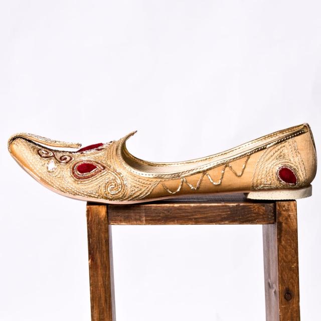 神秘と混沌の国インドから華やかでゴージャスな男性用シューズが届きました。「モジャリ」ともいい、古くはムガール帝国の宮廷靴に起源を遡るといいます。光沢感のある布と糸が用いられており、白いスーツに合わせれば気分はまさにボリウッドスター!もちろんインド伝統の民族衣装クルタパジャやシャルワニとの相性もバッチリです。派手ではありますが風格のある趣なので意外と普段着にも合わせられるかも?!