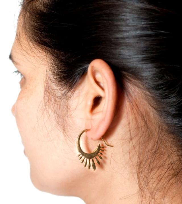 古い伝統を持ち、じっとゾウのように動かないようなイメージのインドですが、実はインド人はどんどん新しいインドデザインを生み出しています。このピアスもここ数年のうちに出てきた素敵なもので、ティラキタの買い付けスタッフが見た瞬間に「おお、これは欲しい!」と叫んでしまったものです。今までのインドデザインのようにごてごてしていず、シンプルでかつ美しくまとまっています。