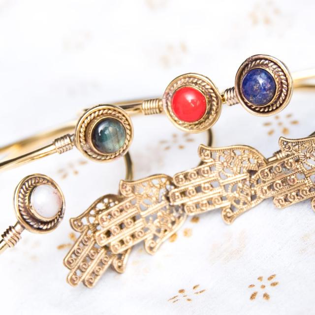 インドの天然石付きメタルバングル / バングル、パワーストーン、メタルバングル、アクセ、アクセサリー アクセ 【インドとアジアのアクセサリー