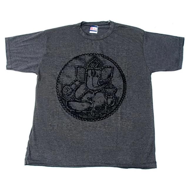 ストーンガネーシャ Tシャツ【ヘザー生地】 / T-シャツ、インドの神様 T-シャツ、エスニック、ヒンドゥー、ガネーシャ、ヘザー生地 TIRAKITA(ティラキタ) エスニック衣料 【エスニック・アジアン衣料