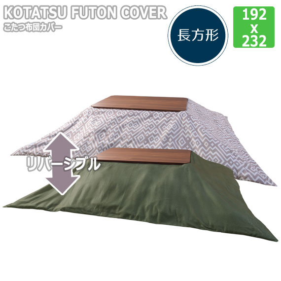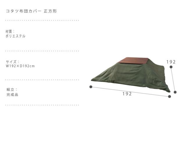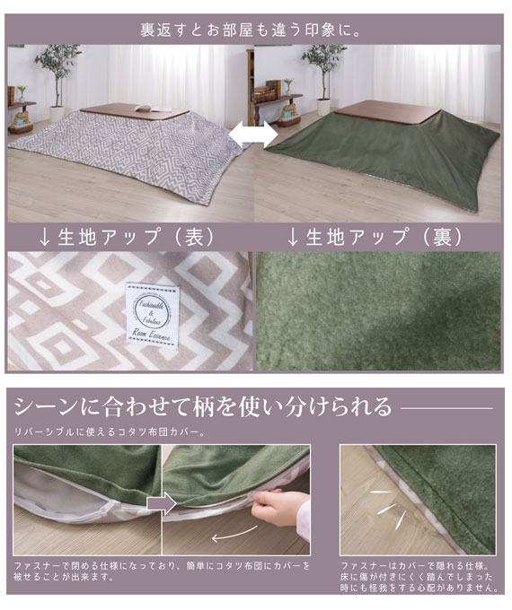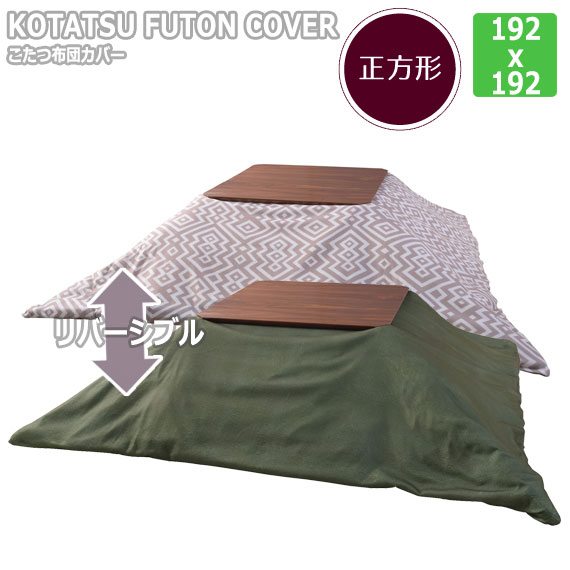 KOTASTSU FUTON COVER コタツ布団カバー 正方形 (こたつ 掛け布団 カバー リバーシブル 正方形 無地 グレー グリーン カジュアル 北欧 冬物 防寒 おすすめ)
