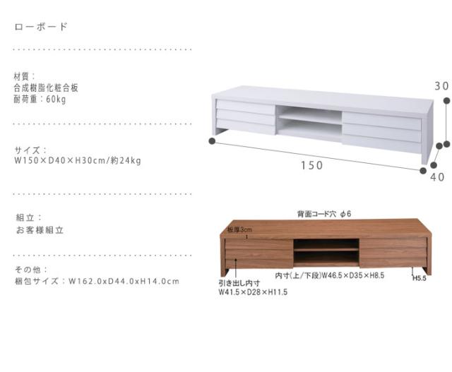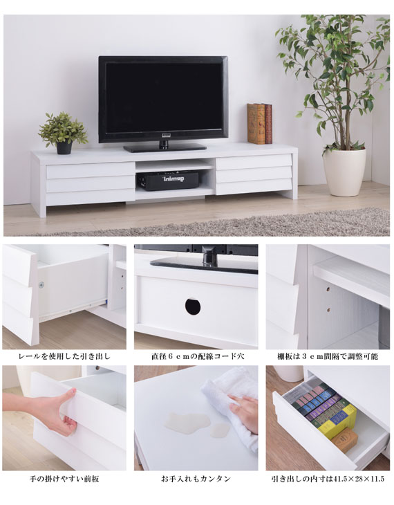 | 説明 | 大好評のテレビボードに新色(ホワイト)を追加。 木目調のローボードで上品な雰囲気を演出します。 |
