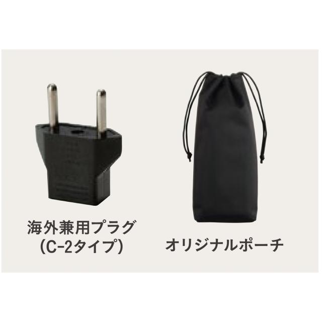 アイロンの収納や持ち運びに便利な オリジナルポーチと[C-2]タイプのプ ラグ付。