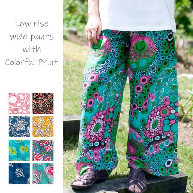 ローライズのカラフルプリントのワイドパンツ / 女性 コットン TIRAKITA(ティラキタ) ボトムス ロング メンズ レディース ユニセックス エスニック衣料 アジアンファッション エスニックファッション