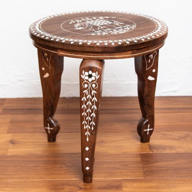 マハラジャの邸宅の令嬢のお部屋にありそうな優雅で美しいアジアンサイドテーブルです。象の顔と鼻をモチーフにした三脚がとてもキュートで、インド人ならではの可愛らしい感性が光るデザインになっています。