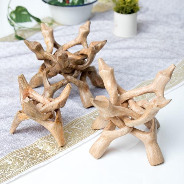【送料無料】 一本の木を彫って作ったマンゴーウッドボウルスタンド5本足タイプ【直径17cm】 / シンギングボール シンギングボウル マット 台座 仏教 楽器 瞑想 民族楽器 インド楽器 エスニック楽器 ヒーリング楽器