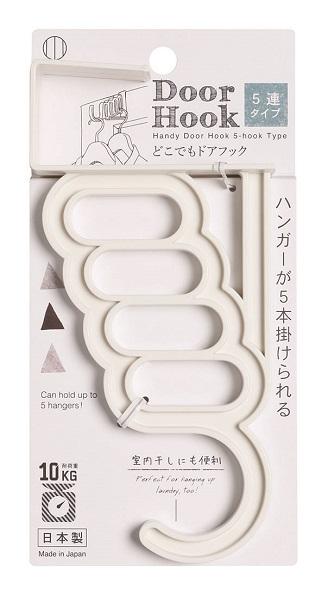 ハンガードアフック 5連タイプ 耐荷重約10kg どこでもドアフック [色指定不可] (100円ショップ 100円均一 100均一 100均)