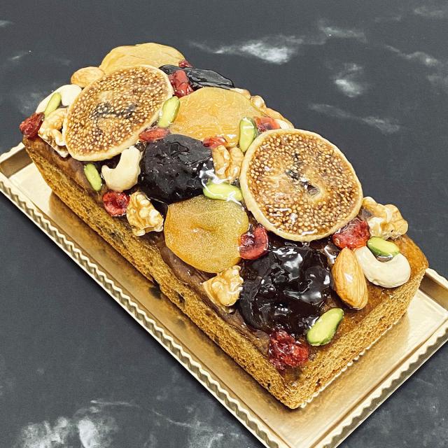 焼き上がりから日を追うごとに「自家製漬込みフルーツ」の旨味が生地に浸透していき、今日より明日、明日より明後日、と熟成が進み、美味しくなっていくのが特徴です。日持ちも約1カ月と長めで、見た目も華やかなので手土産や贈り物にぴったりです。