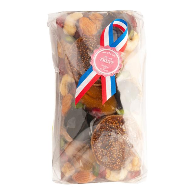 【原材料】小麦粉、砂糖、卵、バター、乳等を主要原料とする食品、レーズン、ドライプラム、りんご、クルミ、アーモンド、カシューナッツ、オレンジピール、栗、洋酒、ドライイチジク、ドライクランベリー、ドライアプリコット、ピスタチオ、シナモン、ナツメグ、ジンジャー、ブラックペッパー、ベーキングパウダー、ナパージュ【ブドウ糖加糖液糖、砂糖、杏ピューレ、ゲル化剤(ペクチン、アルギン酸Na)、クエン酸、香料、保存料(ソルビンサンK)】(原材料の一部にオレンジ、リンゴを含む)
