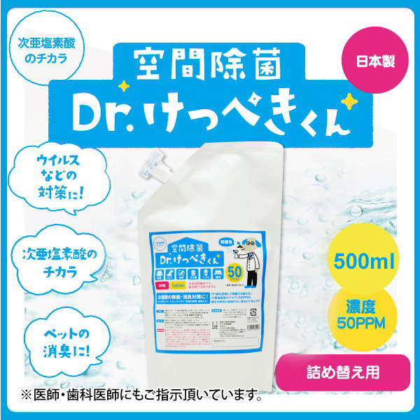 次亜塩素酸水 空間除菌Dr.けっぺきくん 《 50ppm 》 500mL詰め替え用パウチ