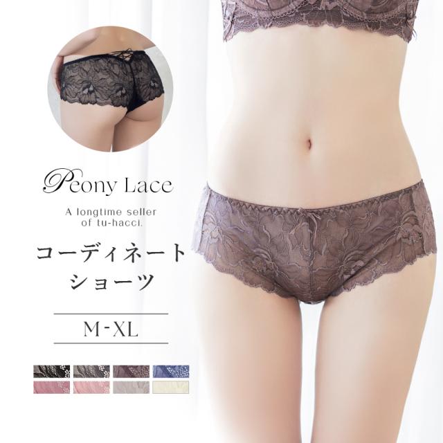 ピオニーレースアップショーツ パンツ ランジェリー お揃いショーツ 総レース バックレース かわいい リンパ開放 ショーツ単品 【秋新作】