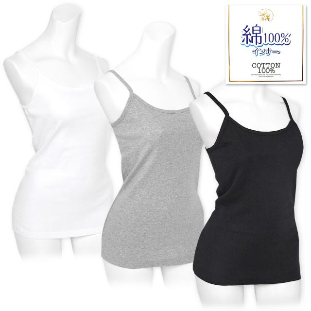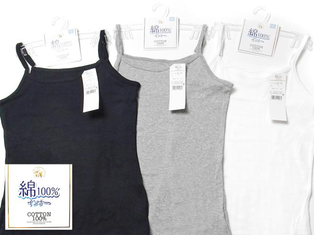 【送料無料】レディース 婦人 綿100% キャミソール 肌に優しい天然素材 さらっとした肌触り フライス編み 伸縮性 アジャスター 肌着 下着 インナー M L LL a-2067【メール便対応】