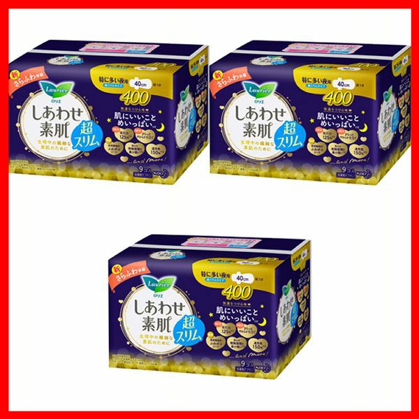 3個セット ロリエ しあわせ素肌超スリム400 特に多い夜用 羽つき 9コ入 花王 (D) Kao ロリエ Laurier しあわせ素肌 特に多い夜 夜用 羽つき 生理用ナプキン 低刺激 超スリム