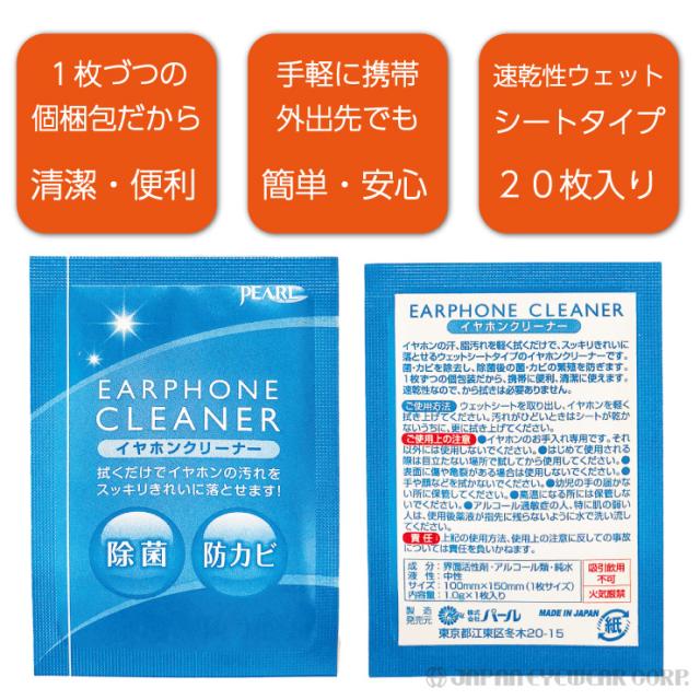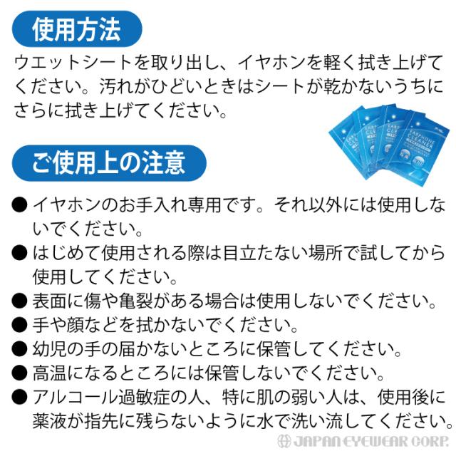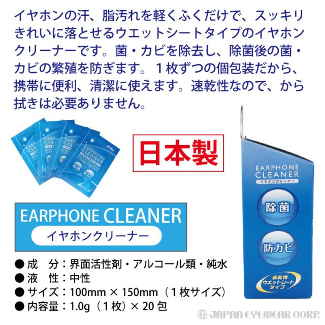 イヤホン専用 クリーナー 除菌 抗菌剤配合 防カビ剤配合 アルコール成分配合 ウェットシート 汚れ 個包装 定型外 送料無料