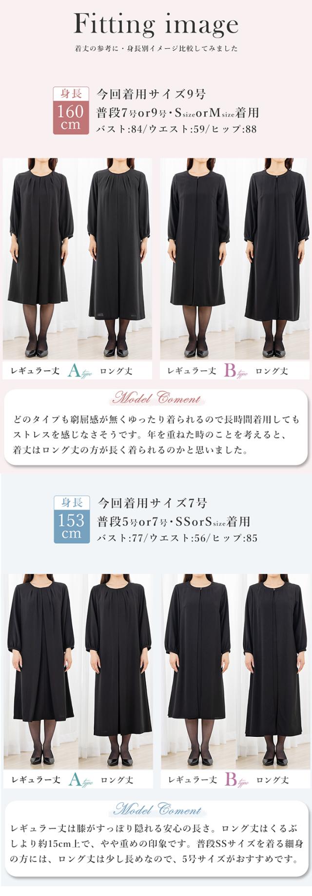 | ワンピース | ・レギュラー丈/ロング丈 ・前開きファスナータイプ ・八分袖 |