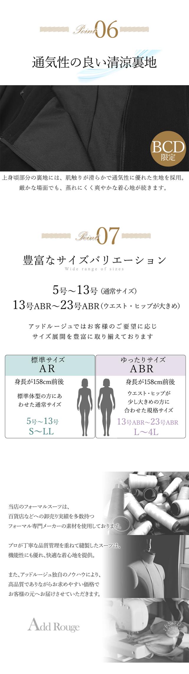 | スーツ&フォーマル専門店AddRouge(アッドルージュ)は、20代・30代・40代・50代の幅広い年代の女性を対象とした、通勤スタイルから冠婚葬祭まであらゆるシーンの服装を、ご提供するレディースファッションショップです。 スーツはこれから社会に出る20代女子のリクルートスーツから、OLや働くママとして活躍するアラサー・アラフォー、ミセス世代のビジネススーツまで様々なデザインをご用意。 ストレッチ素材で着心地を追求するなど、お客様の目線での他と被らない自社商品生産を行っています。 アッドルージュのマザースーツ ( ママスーツ )は、卒園式や卒業式から、入園式や入学式はもちろん、参観日や学校行事にもお薦め。 華やかなデザイン性で、お子様の大切な記念日ともなる、七五三やお宮参りにもお使い頂けます。 フォーマルな装いが叶うので、結婚式や披露宴にも対応致します。 もちろんお葬式や告別式など、マナーに沿った服装が必要なブラックフォーマルもご用意。 スーツの通販に馴染みのないお客様にも、気持ちよくお買い物頂けますよう、精いっぱいお手伝いさせて頂きます。 |