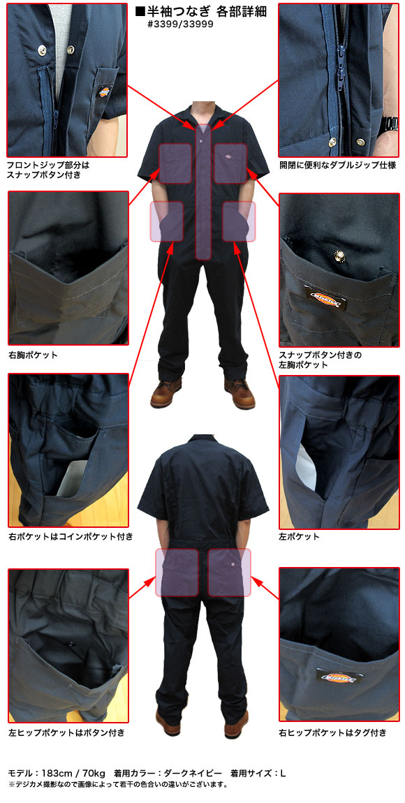 ディッキーズ つなぎ 半袖 作業服 半袖ツナギ メンズ レディース 3399 33999 Dickies 送料無料