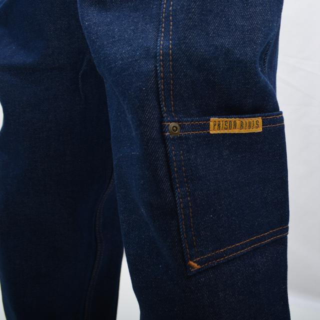 PRISON BLUES(プリズンブルース)よりタフなワークパンツが入荷しました。 14.75オンスとヘビーなデニムにダブルニー仕様とかなり頑丈で、ウエスト部分にはサスペンダーボタンが付いており右前にはコインポケット、後ろにはツールポケットが2つ付いています。未洗い商品の為、最初は固いですが、ガンガン履きこんで自分だけの1本に仕上げて下さい。