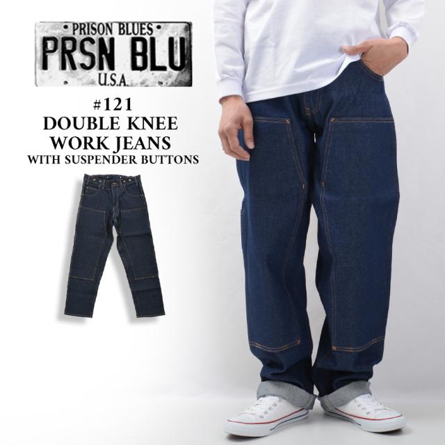 PRISON BLUES プリズンブルース デニム メンズ ダブルニー ワークパンツ ジーンズ with サスペンダーボタン パンツ #121