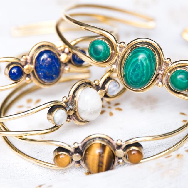 インドの天然石付きメタルバングル / バングル、パワーストーン、メタルバングル、アクセ、アクセサリー アクセ 【インドとアジアのアクセサリー
