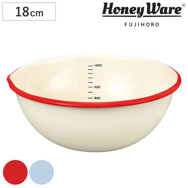 ボウル 18cm ホーロー製 富士ホーロー Honey Ware 片口ボール ( ボール ホーローボウル 琺瑯ボウル 琺瑯ボール ほうろう 片口ボウル 調理ボウル 調理ボール 目盛り付き 白 下ごしらえ キッチンツール )
