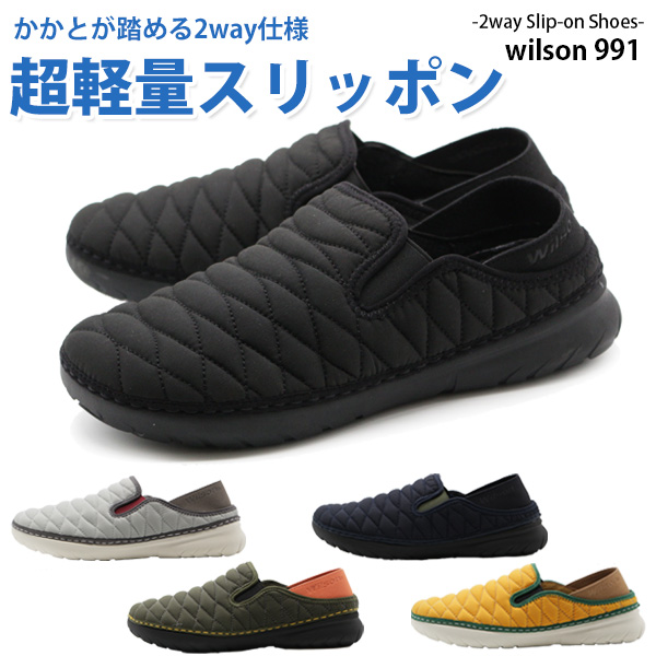 メンズ スニーカー 靴 スリッポン 黒 グレー 紺 緑 黄色 超軽量 軽い かかとが踏める 2WAY おしゃれ 履きやすい Wilson 991