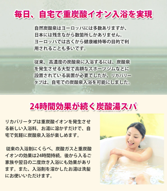 この商品は、ご自宅での重炭酸浴を可能とする商品です。