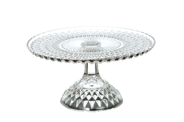 放射線状に施された直線的なカットガラスが印象的な、ガラス製のスタンド。海外のティータイムやホームパーティ、はたまたお伽話にも登場しそうな可愛らしさ。ガラス製なのでケーキやお菓子の色味を邪魔せず引き立たせてくれますが、決して脇役では収まらない魅力的なアイテムです。