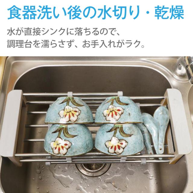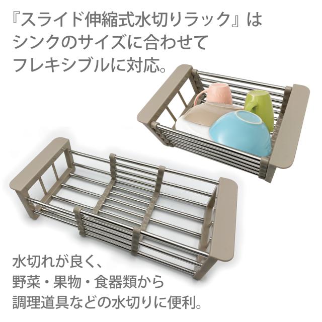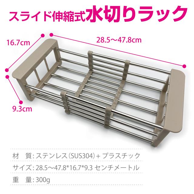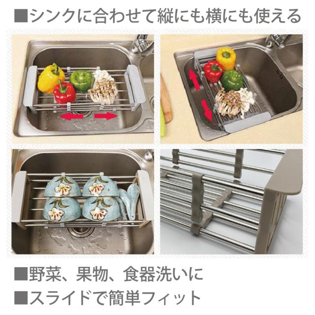 水切りラック 水切りかご シンク上 シンク内 スライド式 ステンレス 水切りトレー 大容量 おしゃれ drain-rack-01